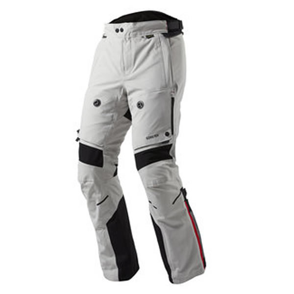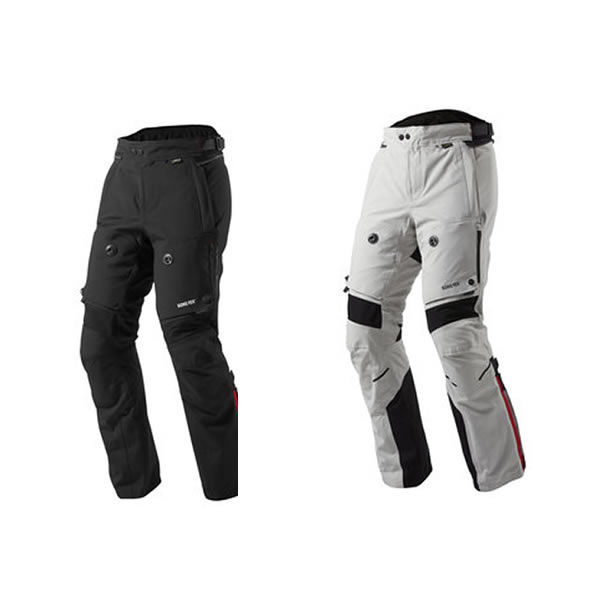 REVIT Poseidon Pants With the outer shell made of 3L GORE-TEX Pro, the membrane laminated directly to the outer shell and the innovative VCS | Aquadefence system incorporated into the design, it’s hard to not be comfortable while wearing the Rev'It! Poseidon Gore-Tex Pants. The trousers offer ventilation on demand, but when the VCS | panel with FidLock magnetic fastener is closed, they are 100 percent waterproof. For warmer-weather riding the thermal liner can be removed and the fit can be adjusted at the calves and ankles. A connection zipper, CE-approved protection, reflective panels, a grip-panel at seat and adjustable protection pockets complete this compelling package.